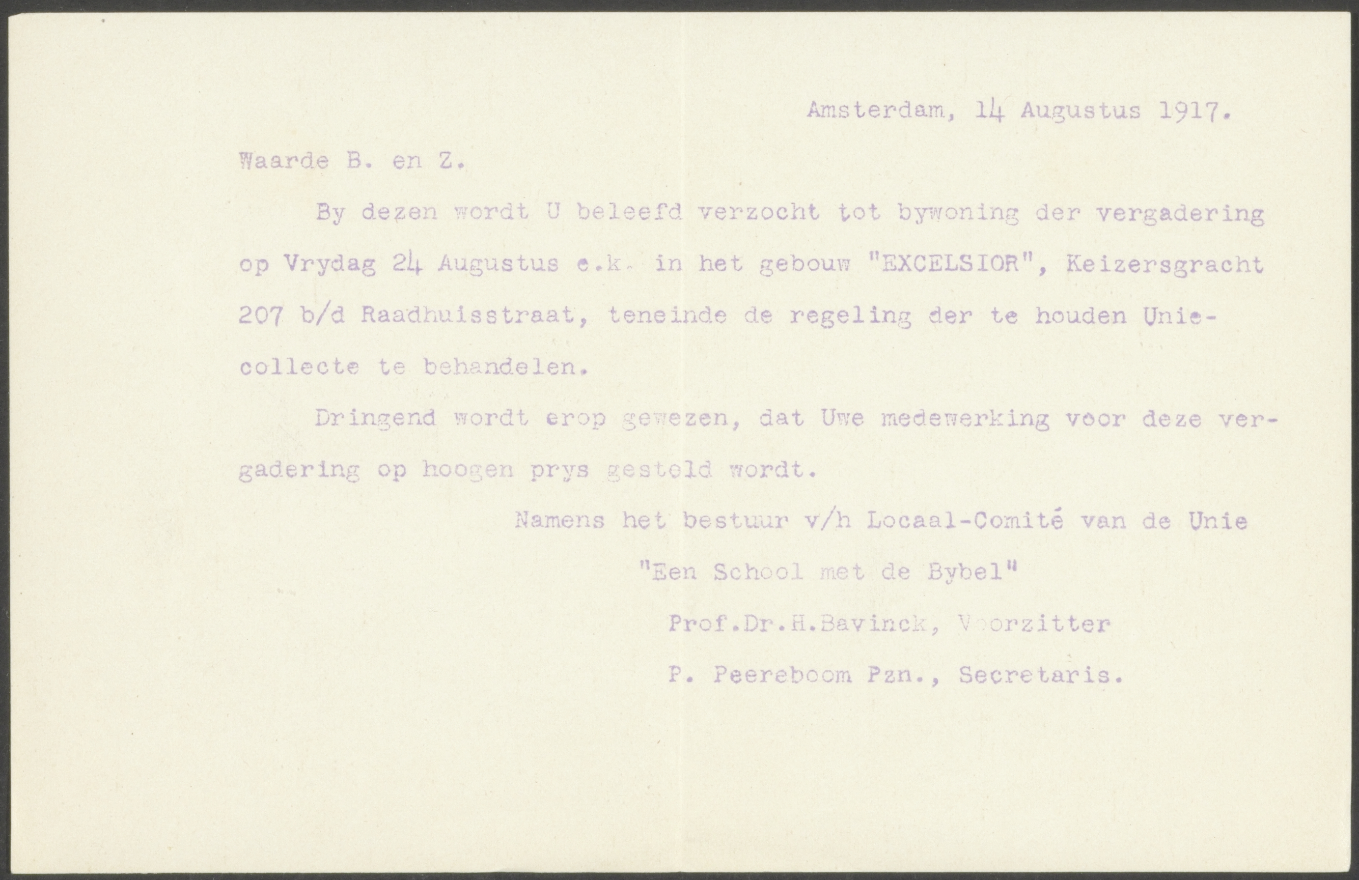 The archive holds more than 900 letters to and from Herman Bavinck, documents regarding his personal life and his family, like diaries, and documents related to Bavinck’s public role as pastor, journalist, politician, professor, church leader, and author: manuscripts, note books, lectures, class notes. Quite a few documents have no date or title, and are identified by the first words of the text. Notes and newspaper clippings are often inserted in documents.