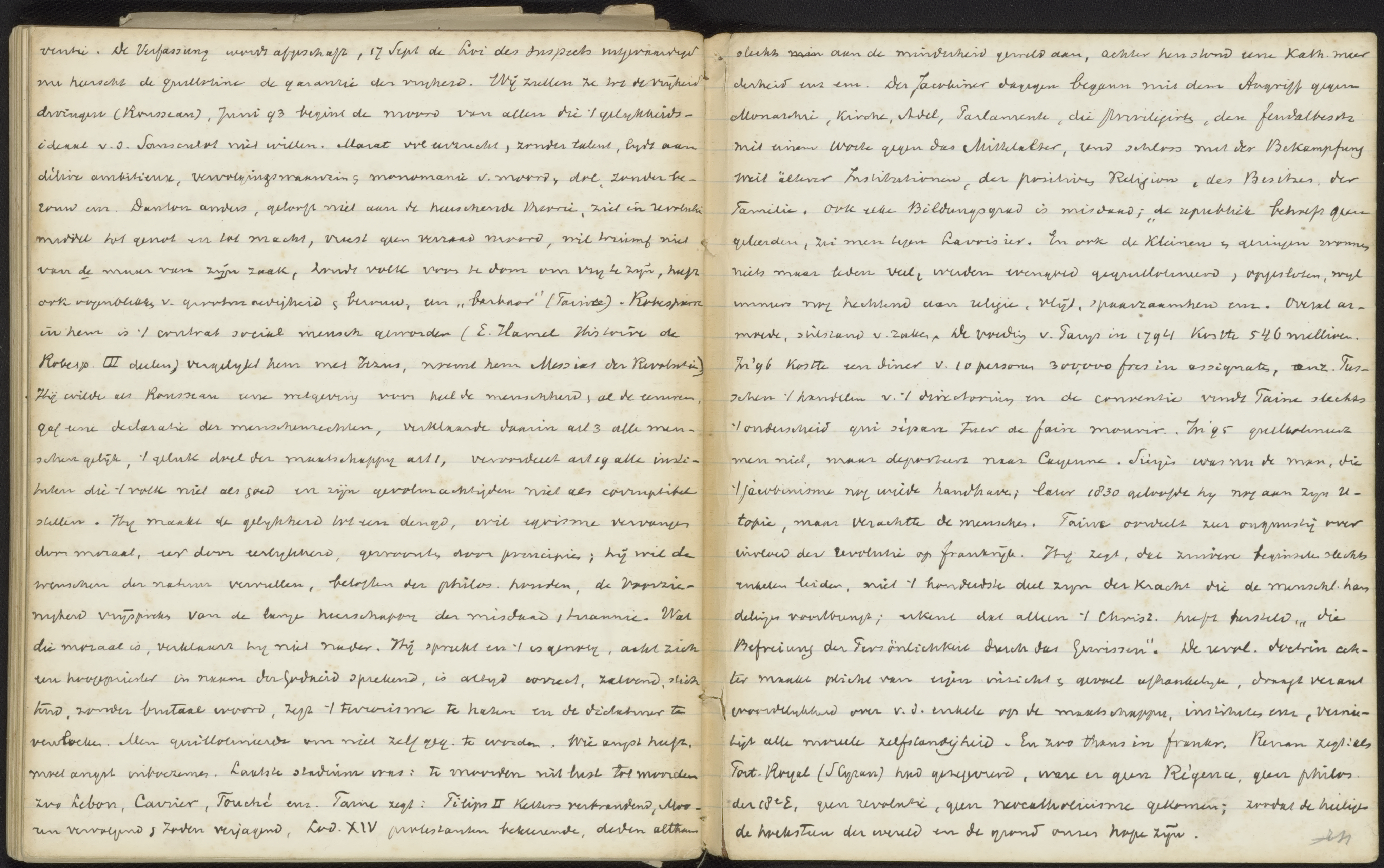 The archive holds more than 900 letters to and from Herman Bavinck, documents regarding his personal life and his family, like diaries, and documents related to Bavinck’s public role as pastor, journalist, politician, professor, church leader, and author: manuscripts, note books, lectures, class notes. Quite a few documents have no date or title, and are identified by the first words of the text. Notes and newspaper clippings are often inserted in documents.
