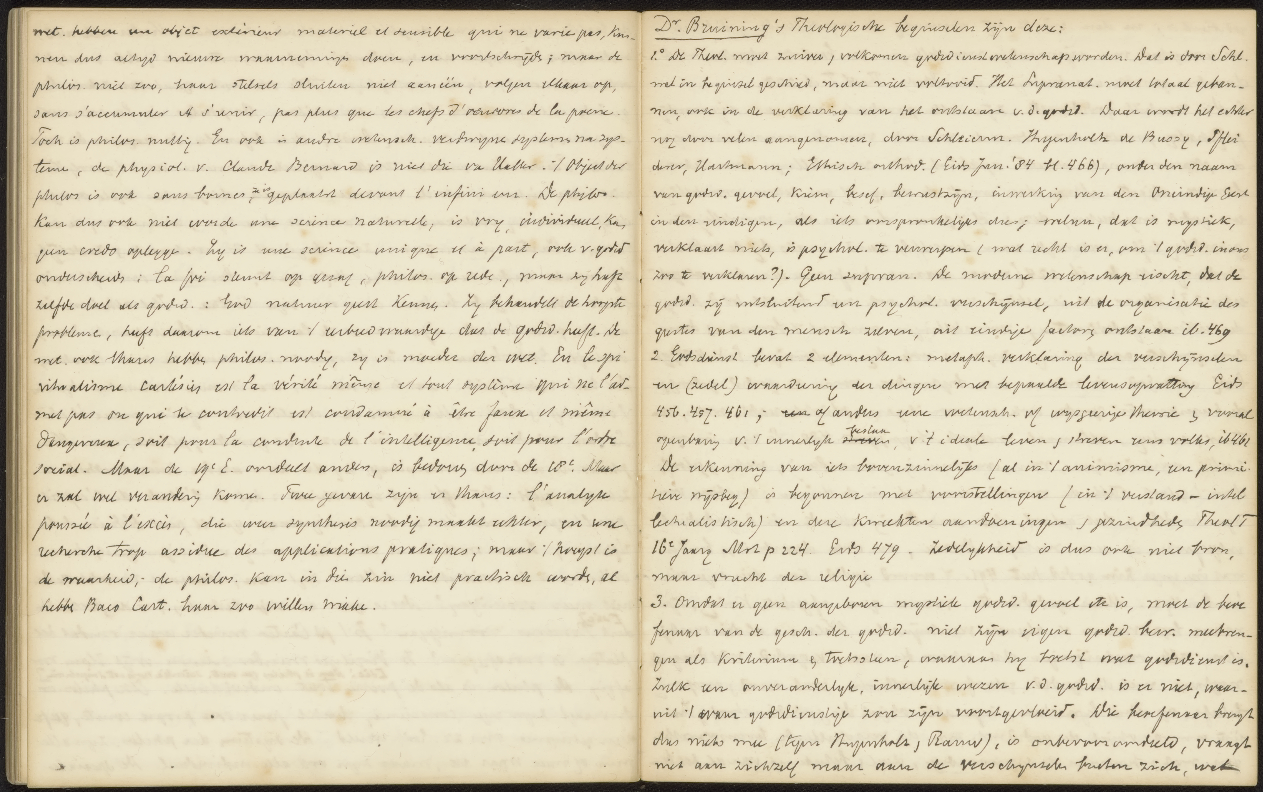 The archive holds more than 900 letters to and from Herman Bavinck, documents regarding his personal life and his family, like diaries, and documents related to Bavinck’s public role as pastor, journalist, politician, professor, church leader, and author: manuscripts, note books, lectures, class notes. Quite a few documents have no date or title, and are identified by the first words of the text. Notes and newspaper clippings are often inserted in documents.