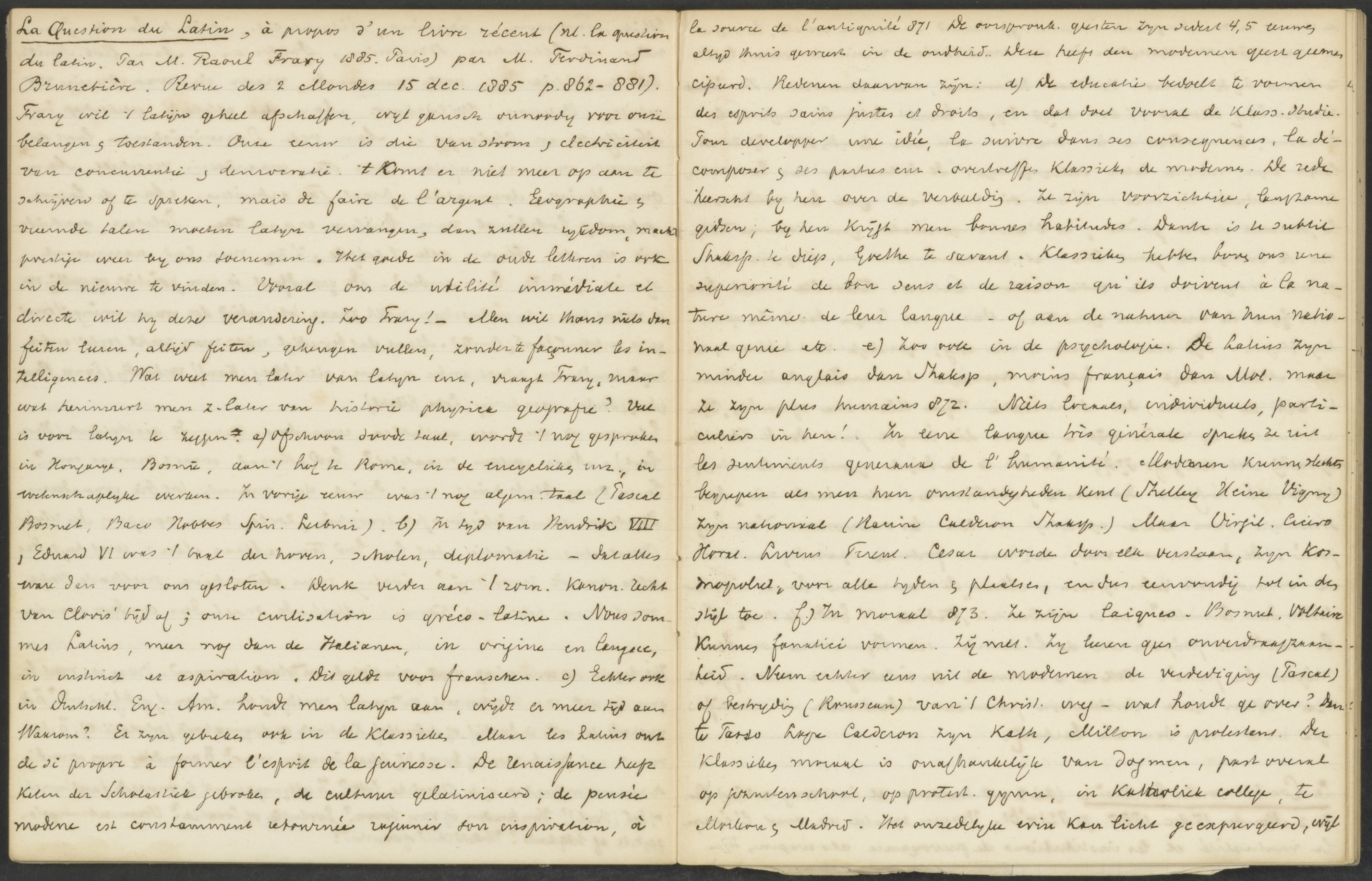 The archive holds more than 900 letters to and from Herman Bavinck, documents regarding his personal life and his family, like diaries, and documents related to Bavinck’s public role as pastor, journalist, politician, professor, church leader, and author: manuscripts, note books, lectures, class notes. Quite a few documents have no date or title, and are identified by the first words of the text. Notes and newspaper clippings are often inserted in documents.
