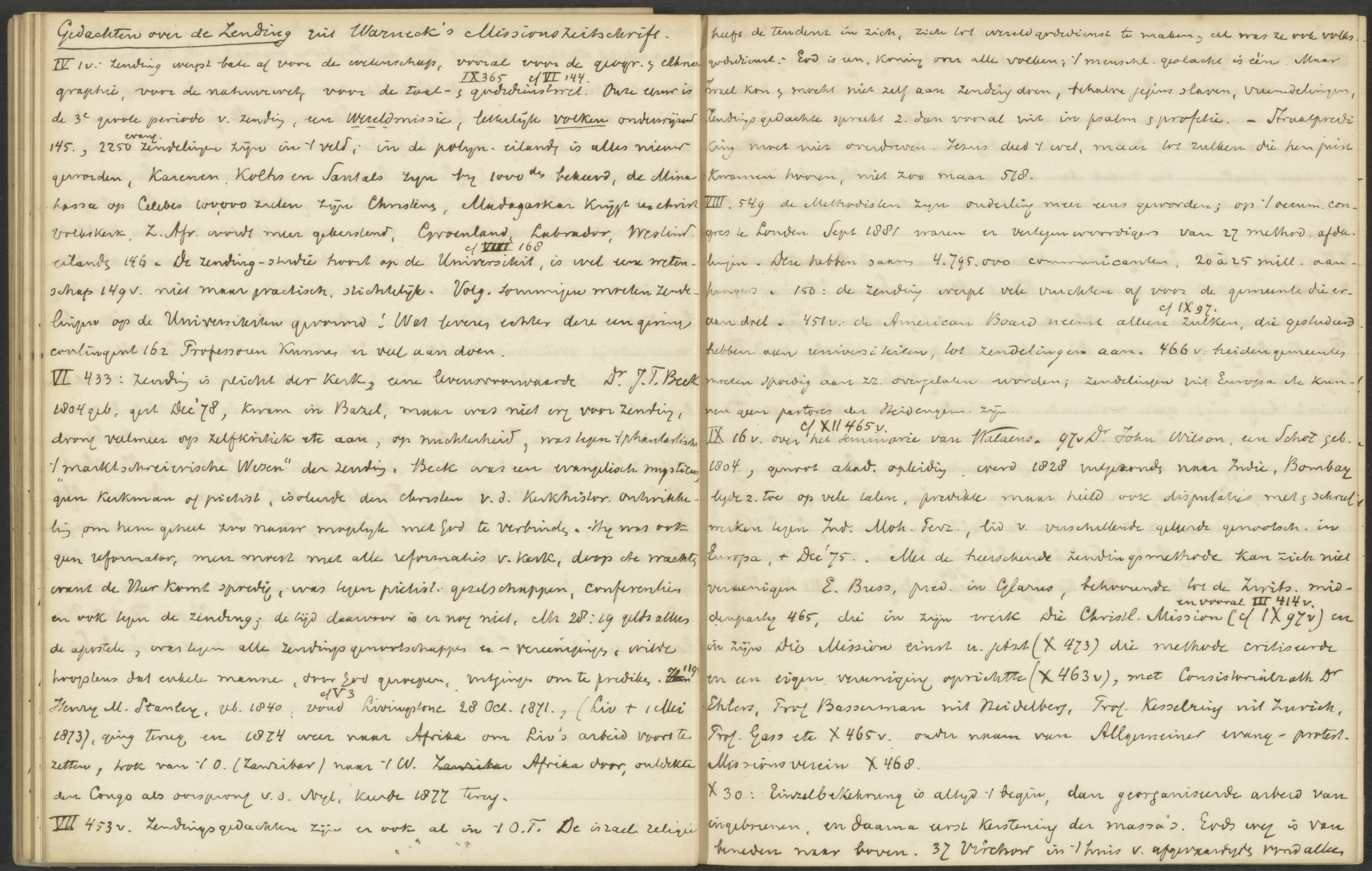 The archive holds more than 900 letters to and from Herman Bavinck, documents regarding his personal life and his family, like diaries, and documents related to Bavinck’s public role as pastor, journalist, politician, professor, church leader, and author: manuscripts, note books, lectures, class notes. Quite a few documents have no date or title, and are identified by the first words of the text. Notes and newspaper clippings are often inserted in documents.