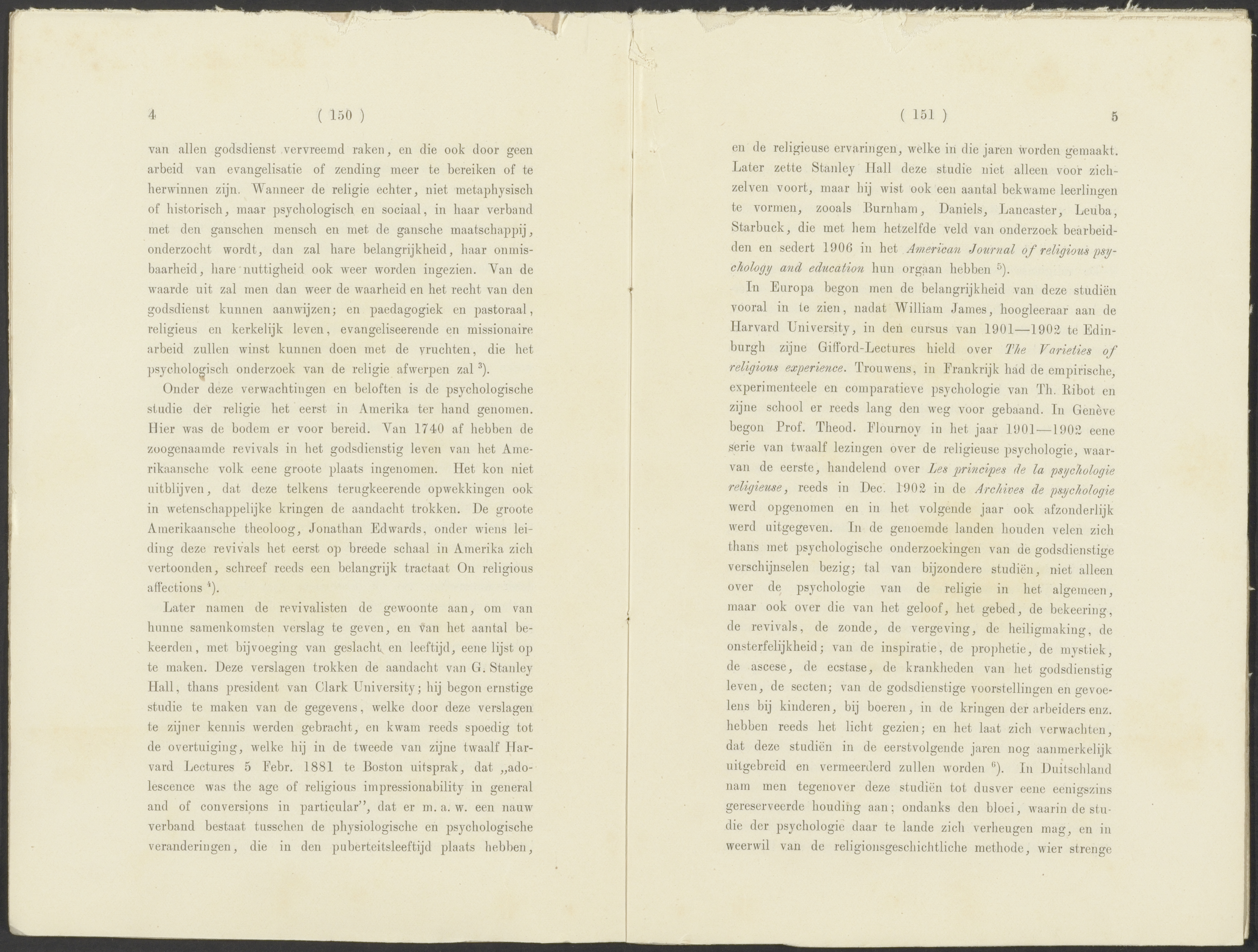Manuscript met ingesloten aantekeningen en krantenknipsels, een uitgave van de tekst en een krantenknipsel betreffende de rede-voering Psychologie der religie (Amsterdam 1907), 1907, 1910, z.d.