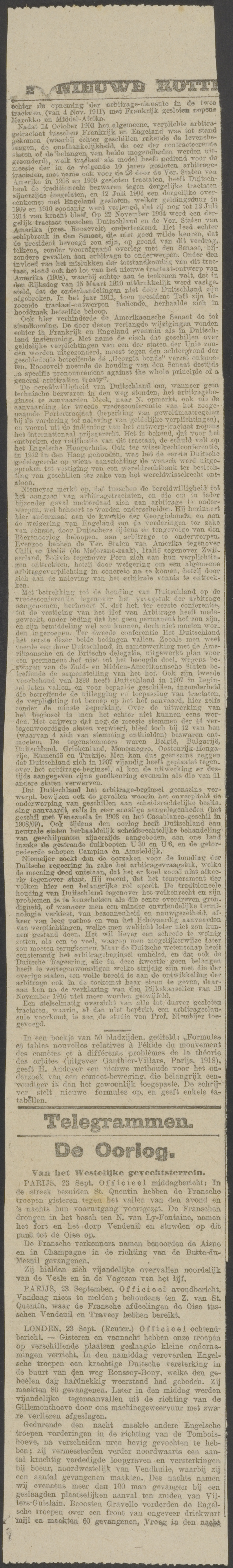 Manuscript, aantekeningen en krantenknipsels betreffende [de redevoering] ‘Christendom, oorlog, volkenbond. 12 dec. 1918’, met een ingevoegde manuscript van een redevoering, 1917-1919, z.d.