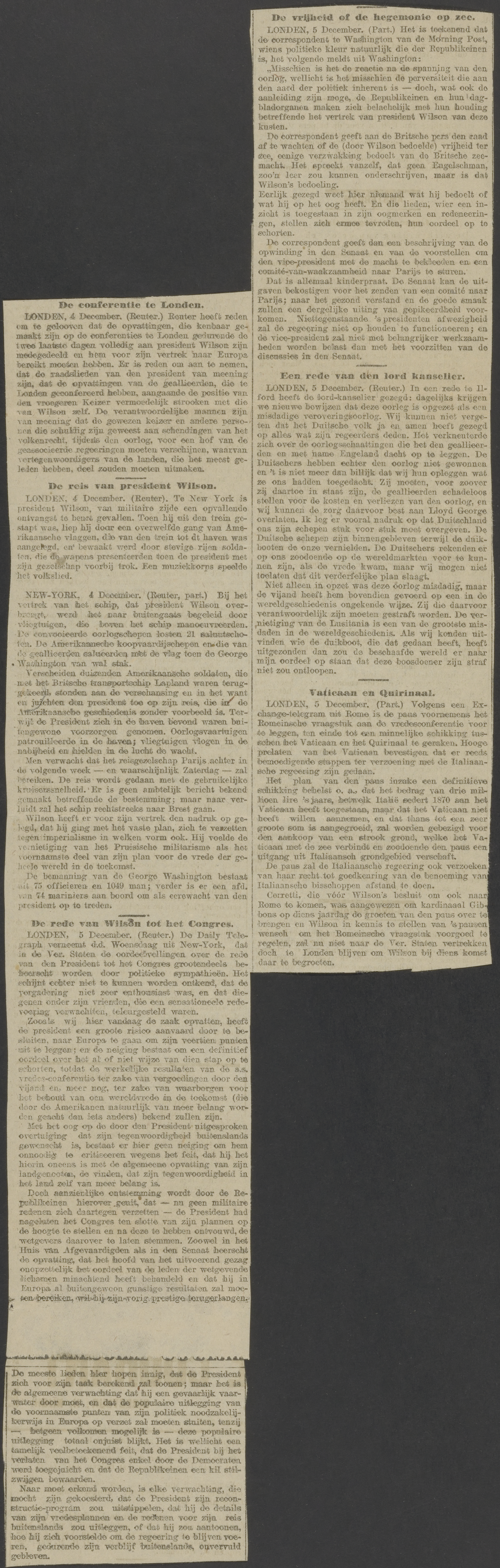 Manuscript, aantekeningen en krantenknipsels betreffende [de redevoering] ‘Christendom, oorlog, volkenbond. 12 dec. 1918’, met een ingevoegde manuscript van een redevoering, 1917-1919, z.d.