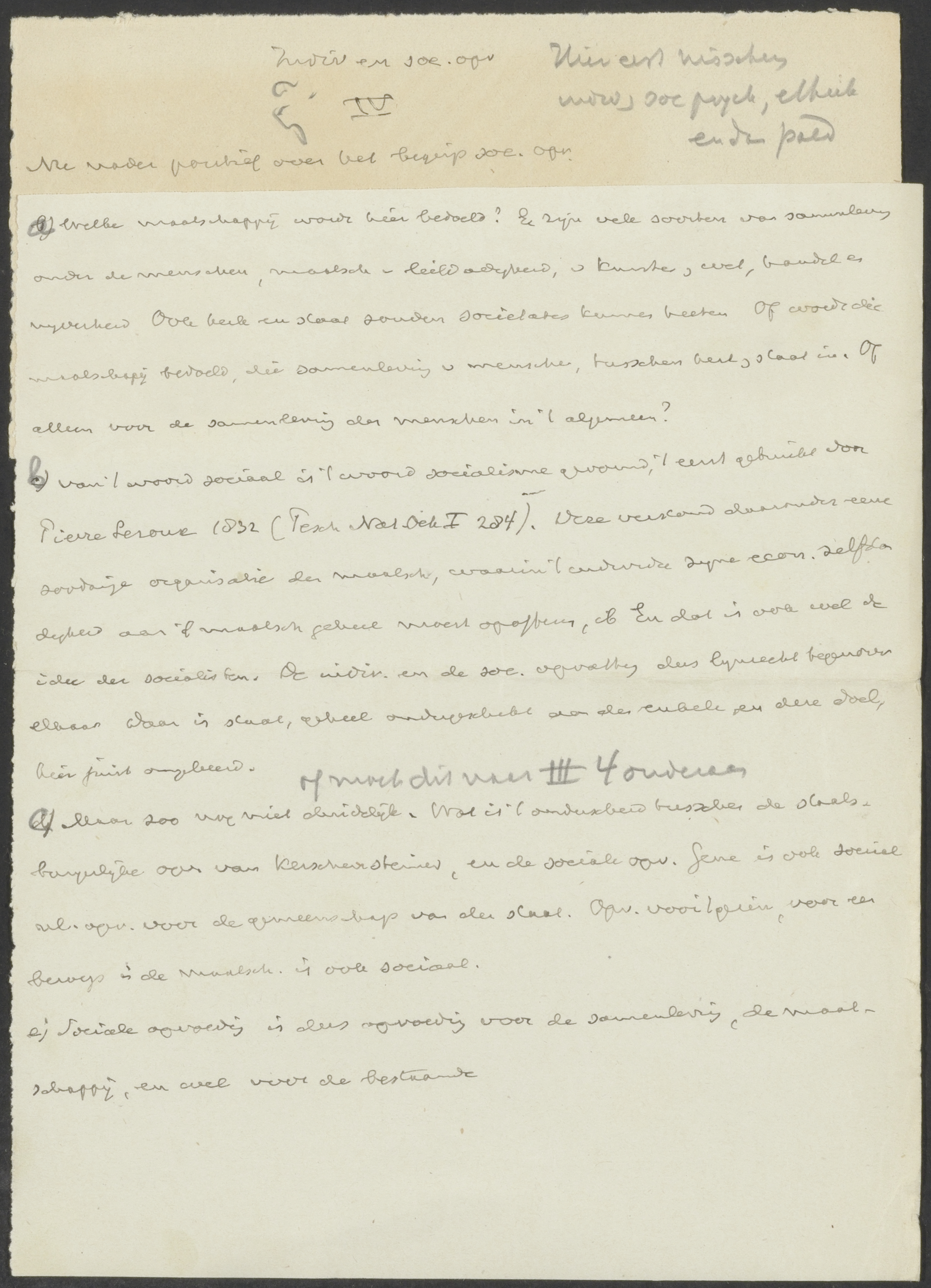 Manuscript, aantekeningen, een krantenknipsel en een agenda van de algemene vergadering van de ‘Vereeniging voor Pedagogiek’ betreffende de daar gehouden redevoering ‘Individuele en sociale paedagogiek’, 1919, z.d.
