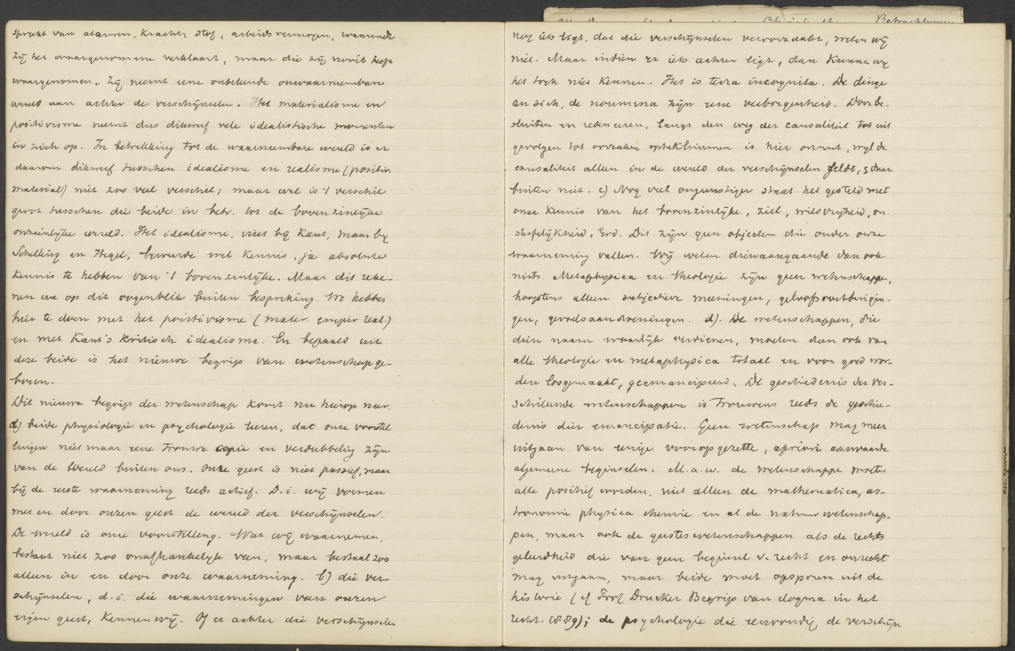 The archive holds more than 900 letters to and from Herman Bavinck, documents regarding his personal life and his family, like diaries, and documents related to Bavinck’s public role as pastor, journalist, politician, professor, church leader, and author: manuscripts, note books, lectures, class notes. Quite a few documents have no date or title, and are identified by the first words of the text. Notes and newspaper clippings are often inserted in documents.