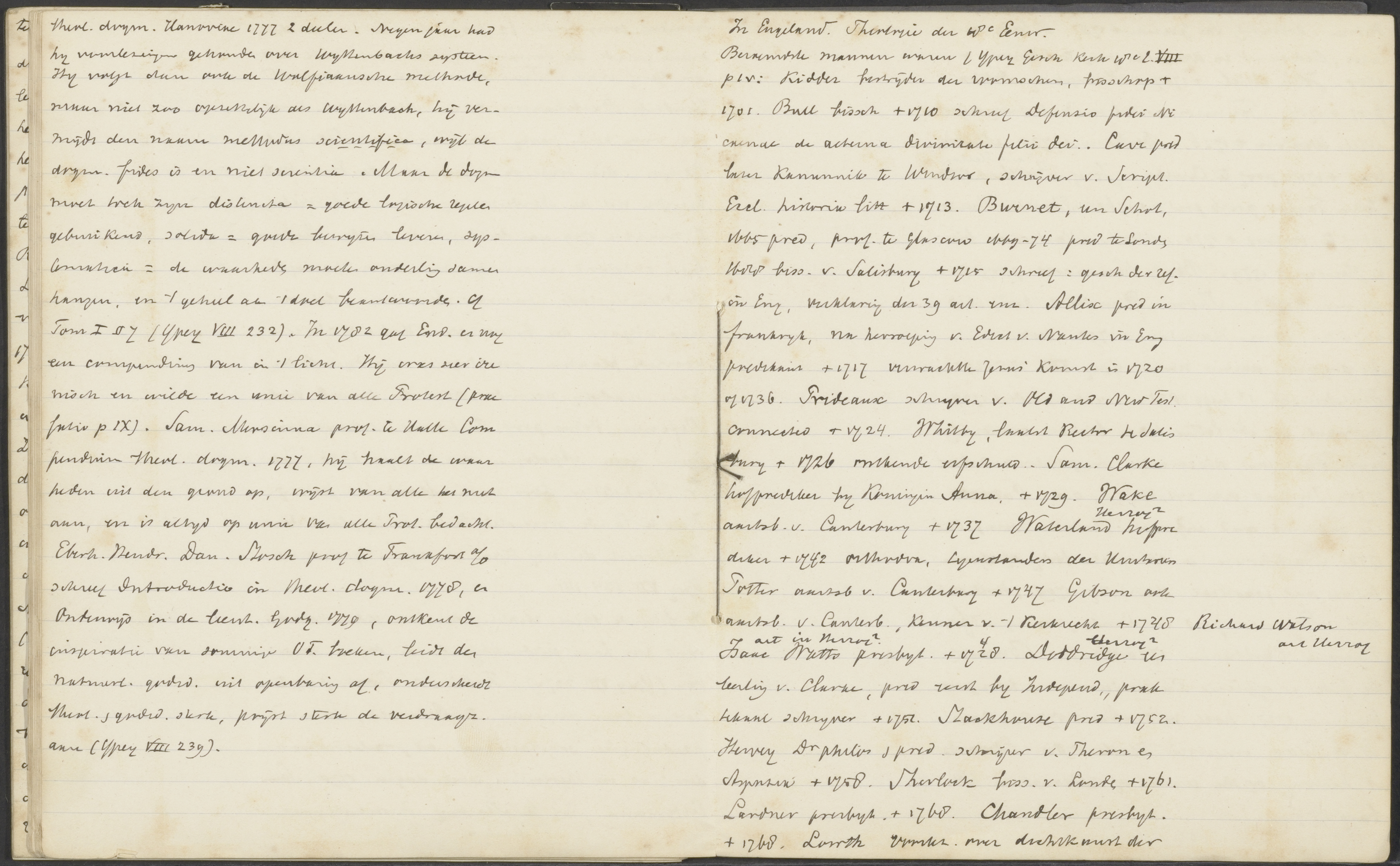 The archive holds more than 900 letters to and from Herman Bavinck, documents regarding his personal life and his family, like diaries, and documents related to Bavinck’s public role as pastor, journalist, politician, professor, church leader, and author: manuscripts, note books, lectures, class notes. Quite a few documents have no date or title, and are identified by the first words of the text. Notes and newspaper clippings are often inserted in documents.