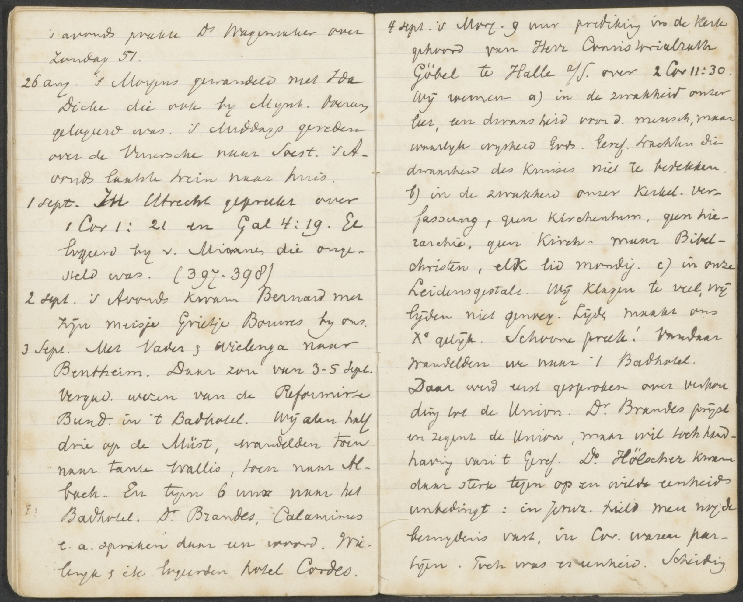 The archive holds more than 900 letters to and from Herman Bavinck, documents regarding his personal life and his family, like diaries, and documents related to Bavinck’s public role as pastor, journalist, politician, professor, church leader, and author: manuscripts, note books, lectures, class notes. Quite a few documents have no date or title, and are identified by the first words of the text. Notes and newspaper clippings are often inserted in documents.