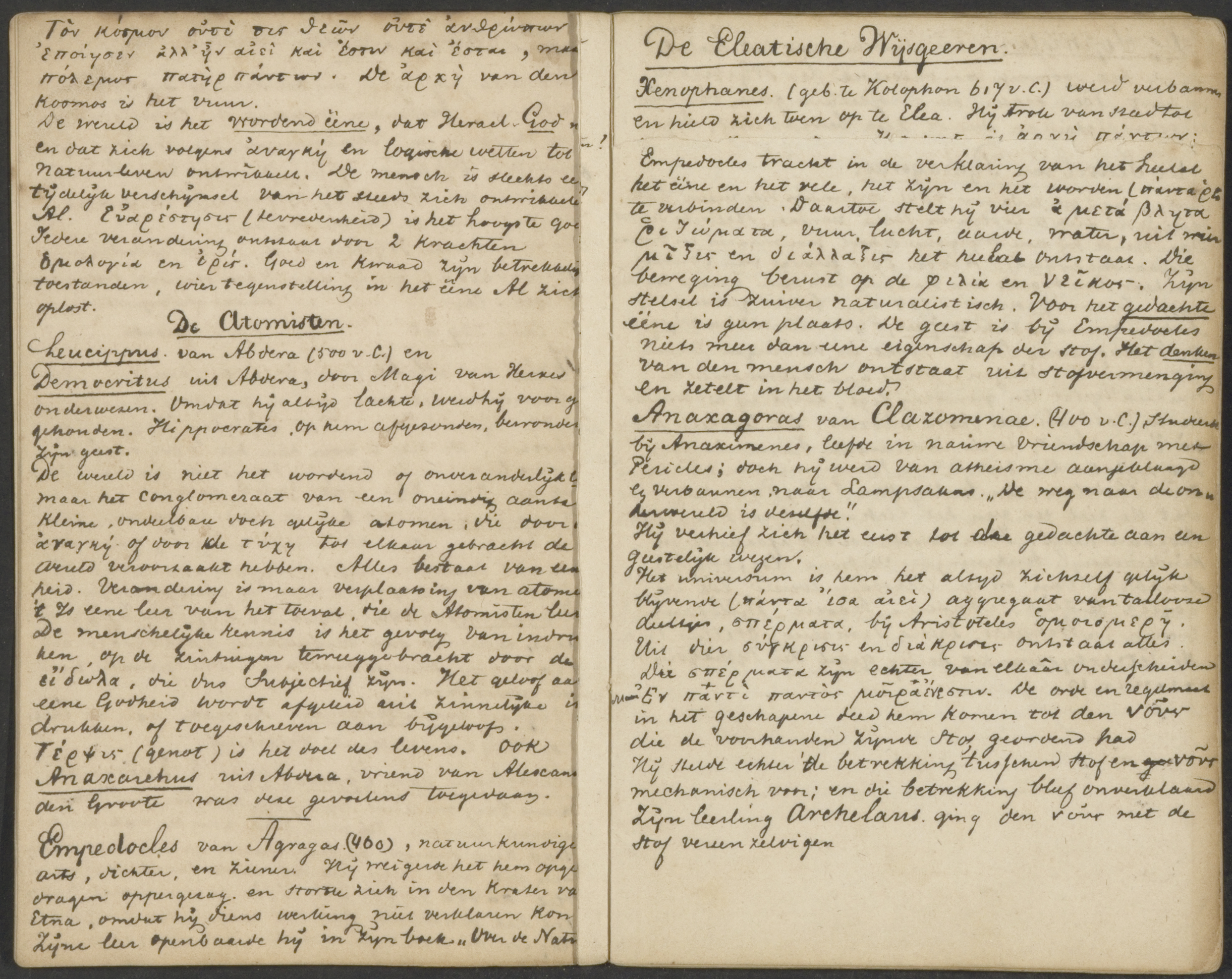 Notitieboekje met aantekeningen betreffende ‘Philosophie’, 1873.